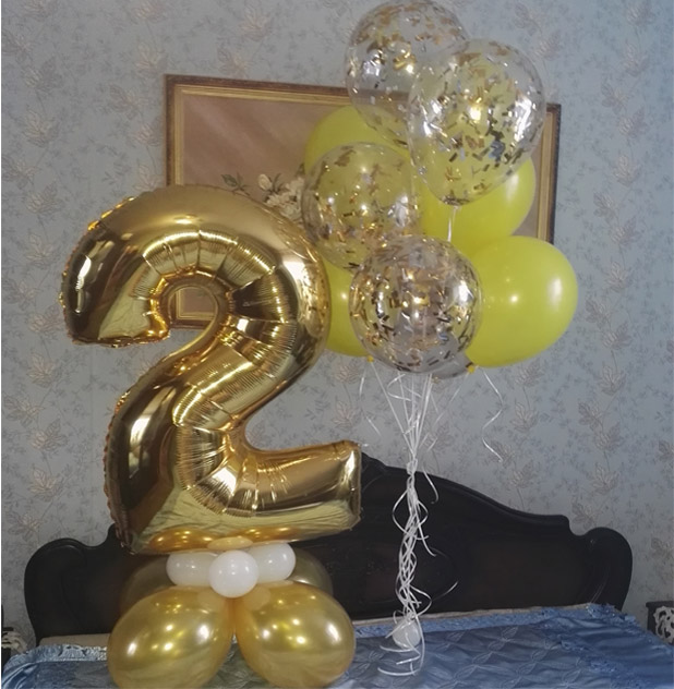 Золотая двойка и шарики с золотым конфетти