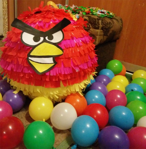 Пиньята птичка Энгри Бердс ,внутри конфеты, конфетти,и маленьких шарики.