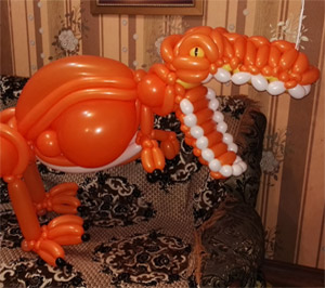 Большой и страшный,но обсолютно безобидный оранжевый динозавр.